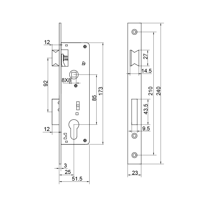 ■deadbolt driven by cylinder, single-throw (backset 25mm)