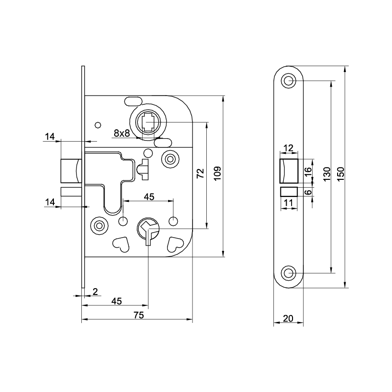■ key hole also applicable to turn knob of 5x5mm spindle, the smartdesign enables the lock to serve as both a key lock and a bathroom lock
