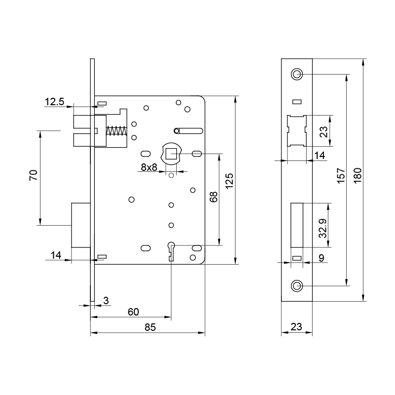 ■ silent latch driven by lever handle only