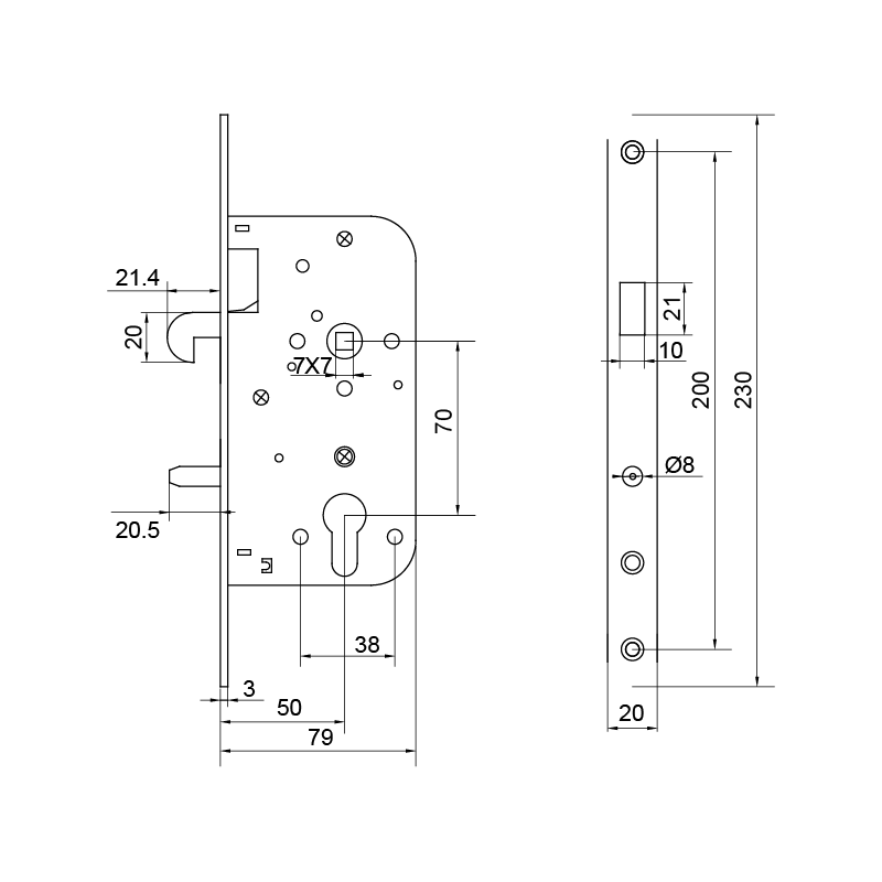 ■ brass hook, driven by both lever handle and cylinder, locked or unlocked by cylinder
