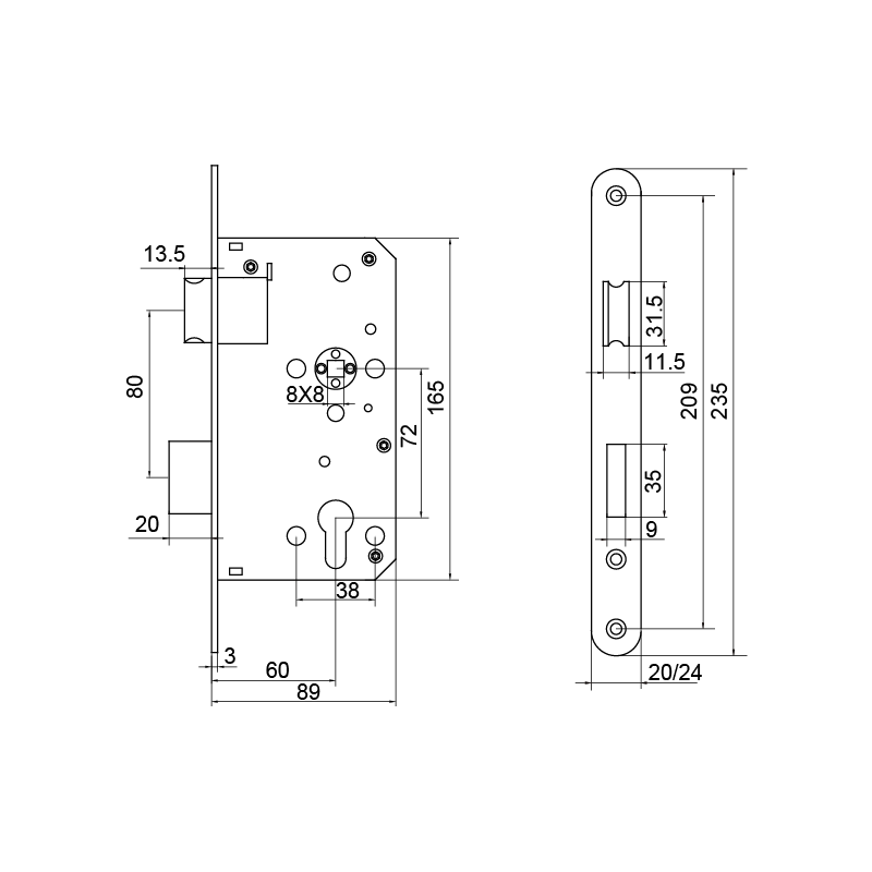 ■ latch in convex shape for a soft closing ofdoor, driven by both lever handle and cylinder