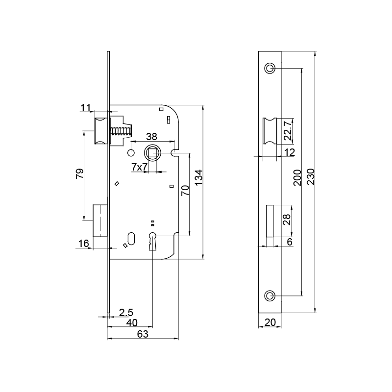 ■ latch in convex shape for a soft closing of door, driven by lever handle only