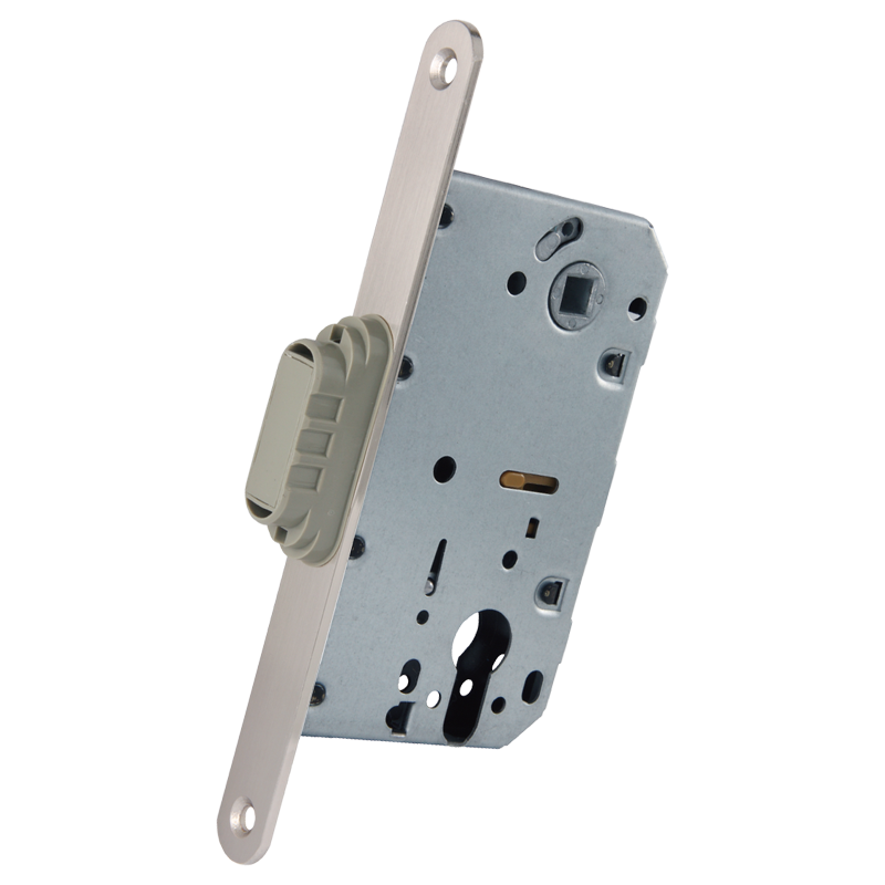 ■latch stays flush with forend until it is right opposite to striker and attracted, preventing itself from being broken in case of a slam of door