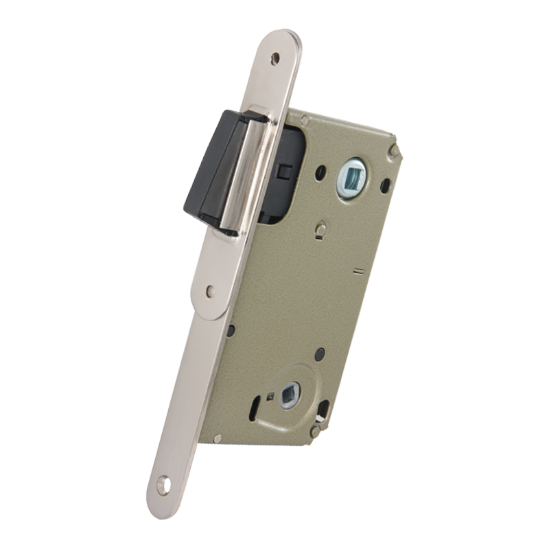 ■latch stays flush with forend until it is right opposite to striker and attracted, preventing itself from being broken in case of a slam of door