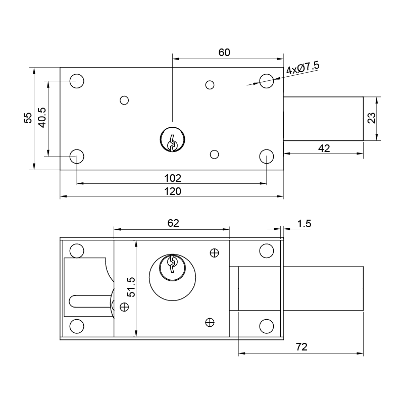 ■1 brass long key, 2 brass short keys, nickel plated