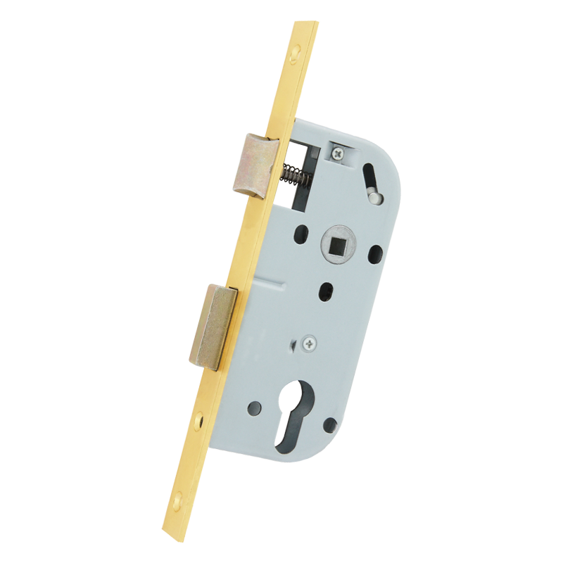 ■ latch in convex shape for a soft closing of door, driven by both lever handle and cylinder