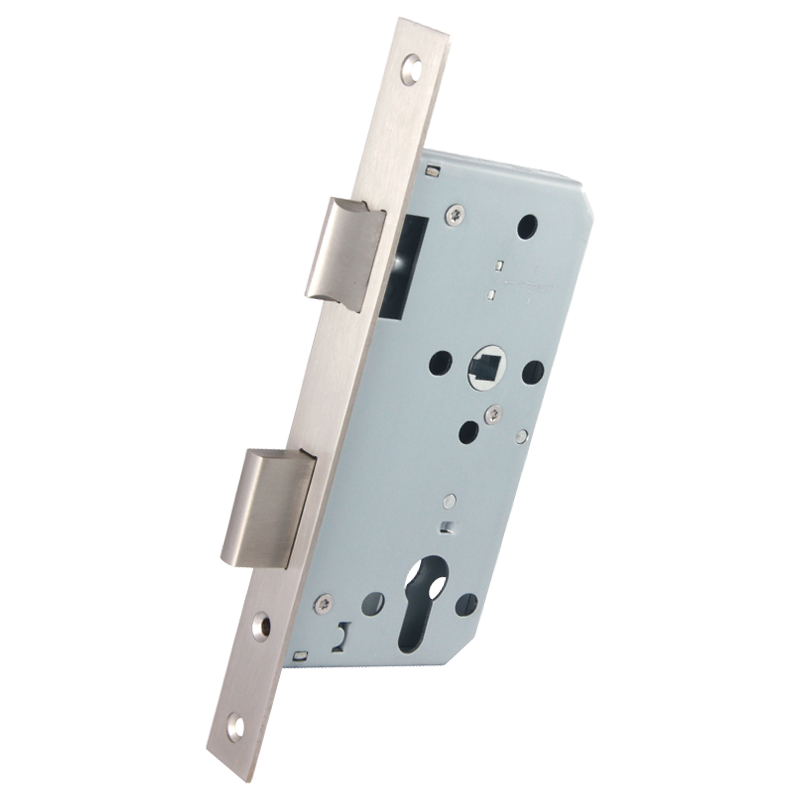 ■ latch in convex shape for a soft closing of door, driven by both lever handle and cylinder