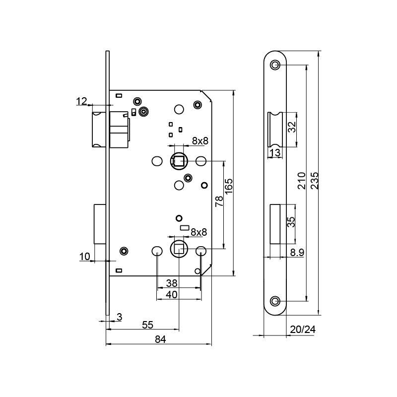 ■ inox latch and deadbolt, fire-resistant