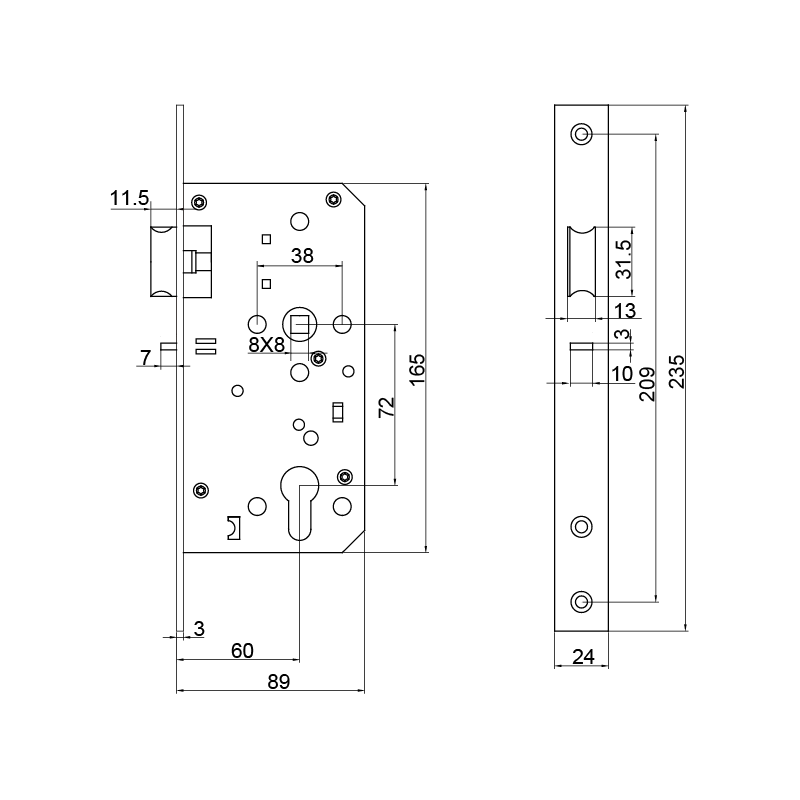 ■ usually used in conjunction with one fixed handle on the outside of door which just can push/pull the door, latch driven by cylinder only on the inside of door, latch driven by both lever handle and cylinder