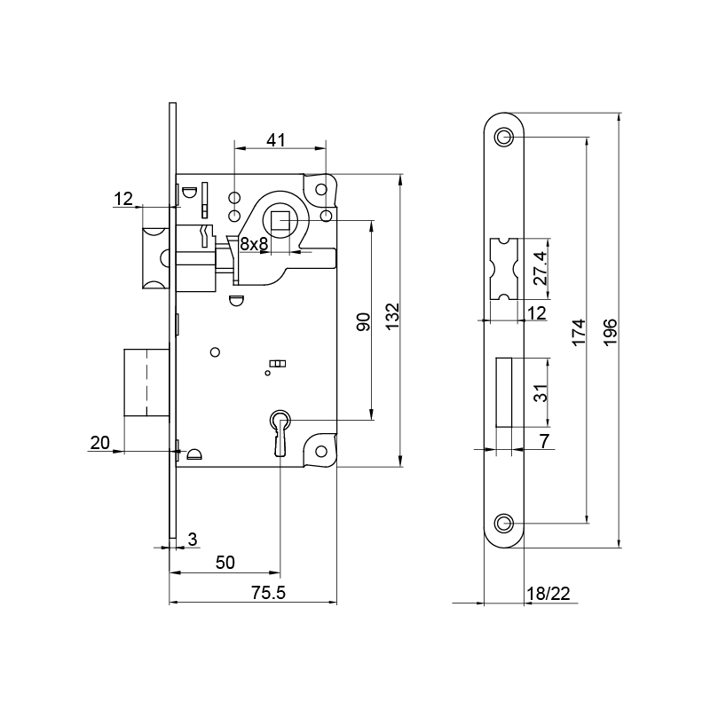 ■ deadbolt driven by key, double-throw