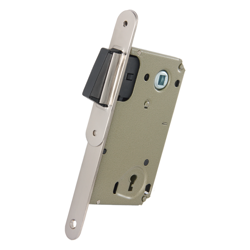 ■latch stays flush with forend until it is right opposite to striker and attracted, preventing itself from being broken in case of a slam of door